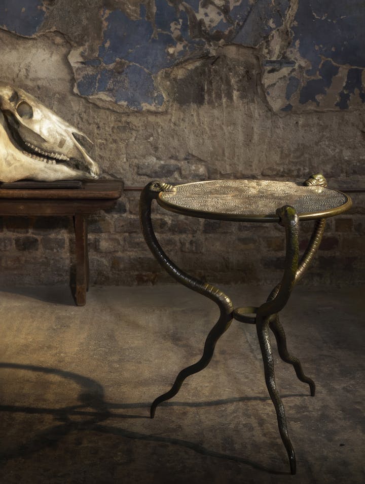 The artist's unique vision for an occasional table. The first in his Serpent series, dreamed, drawn and sculpted by the artist as an ode to ancient mythologies and archaeological treasures.