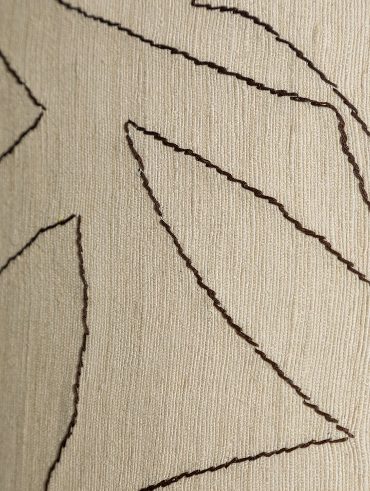 Graceful, abstracted forms of doves in flight, hand-stitched onto raw silk by the artist. This special edition of two shaders was created especially for the Cox Entrance Hall by Vicky Davar at Wow!house 2025.
